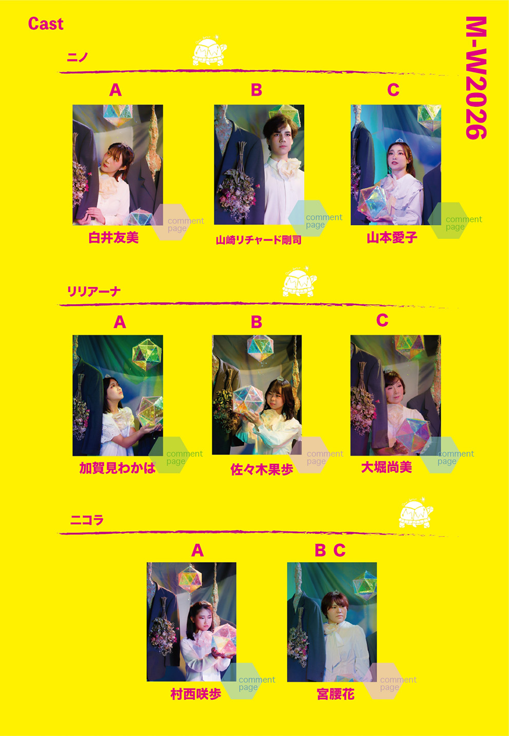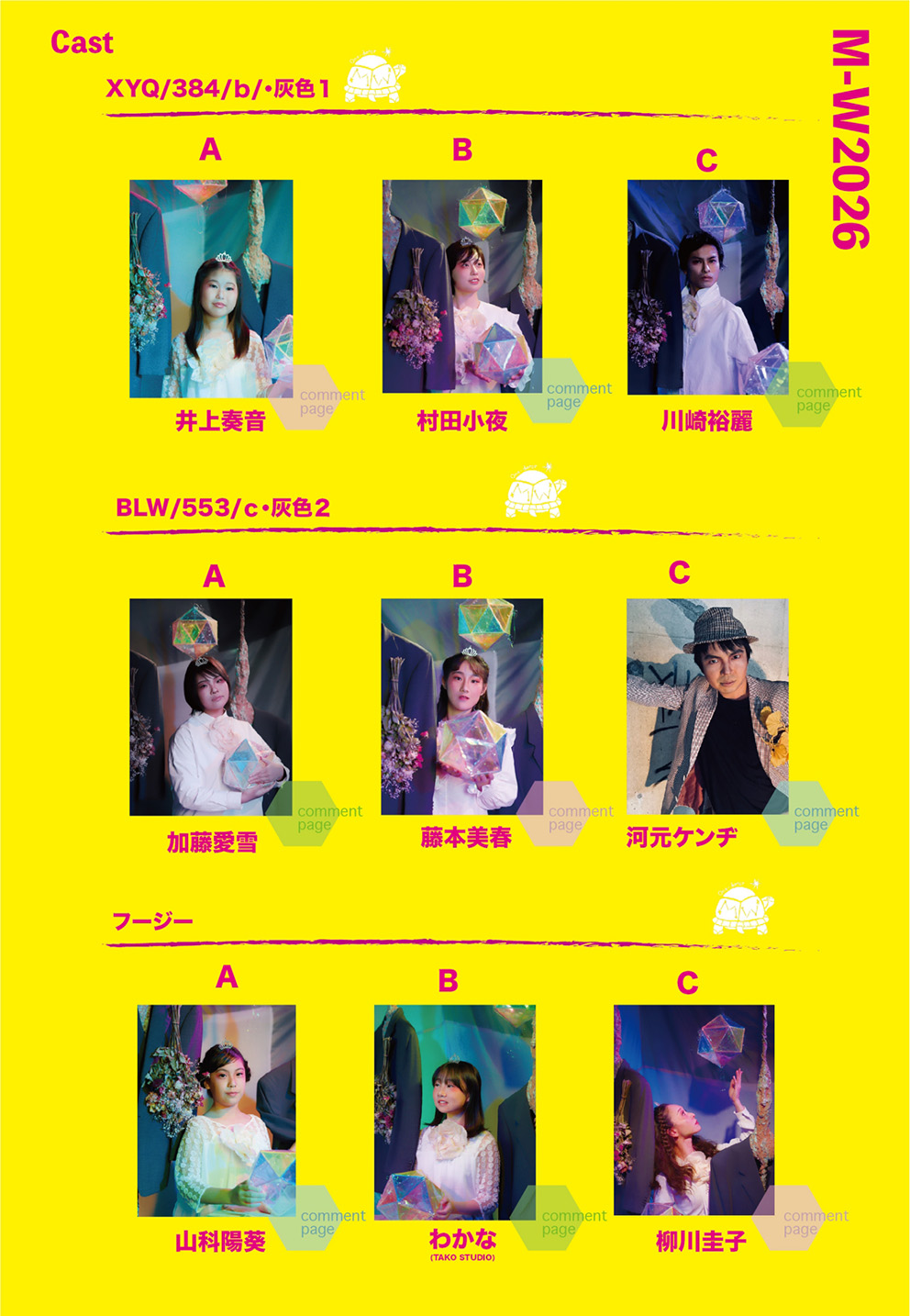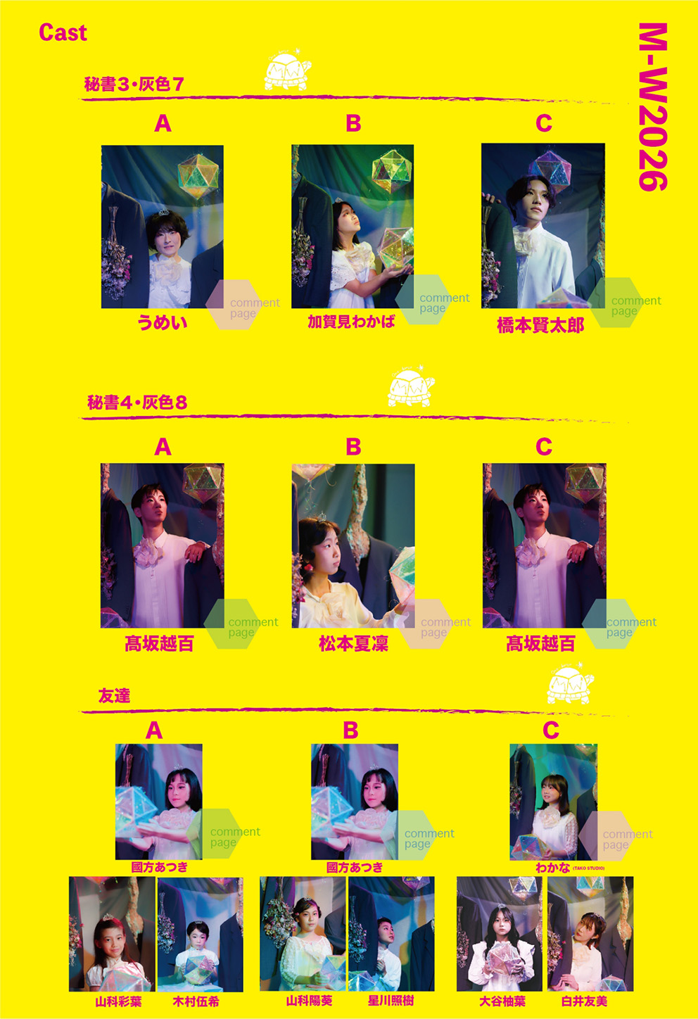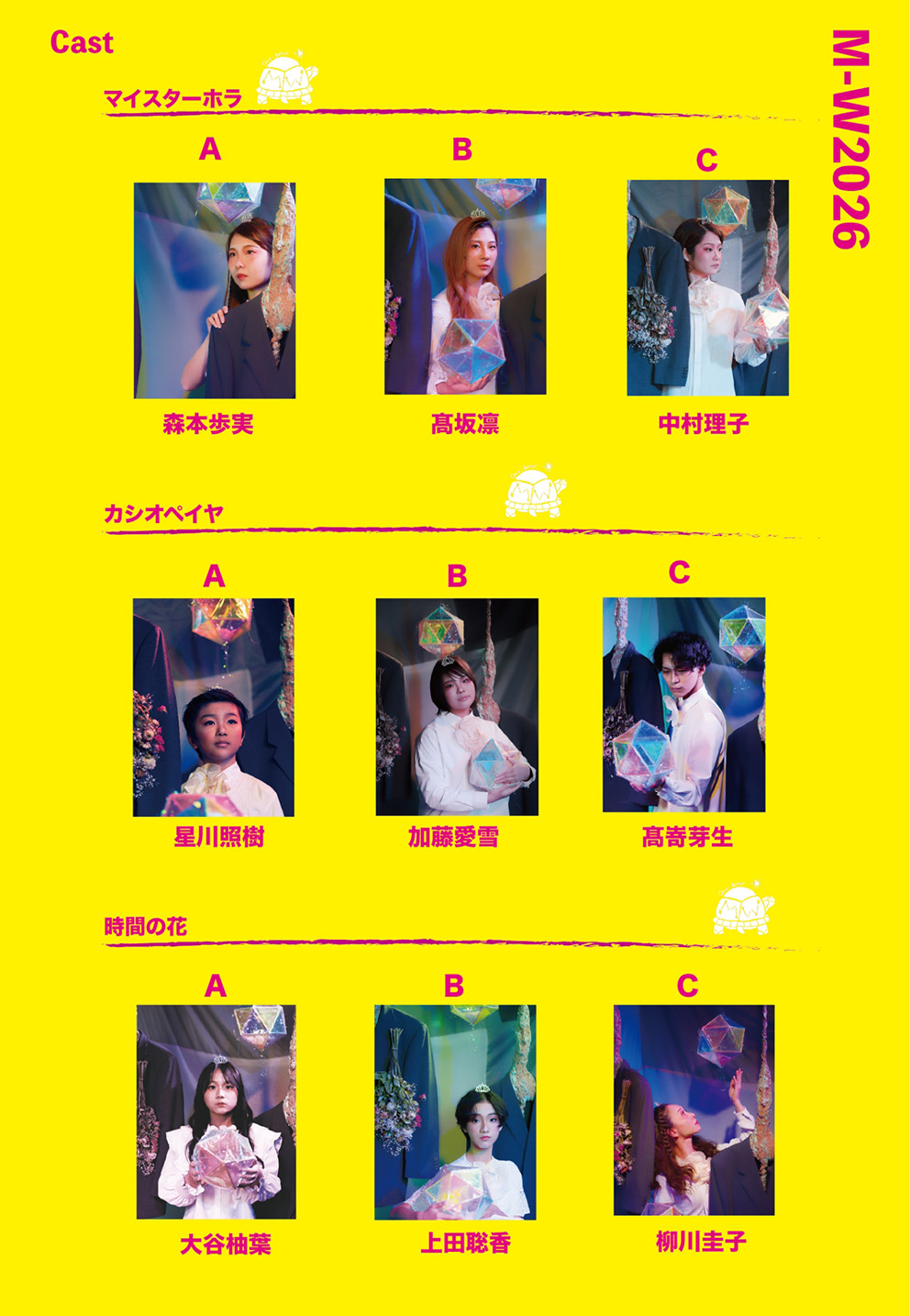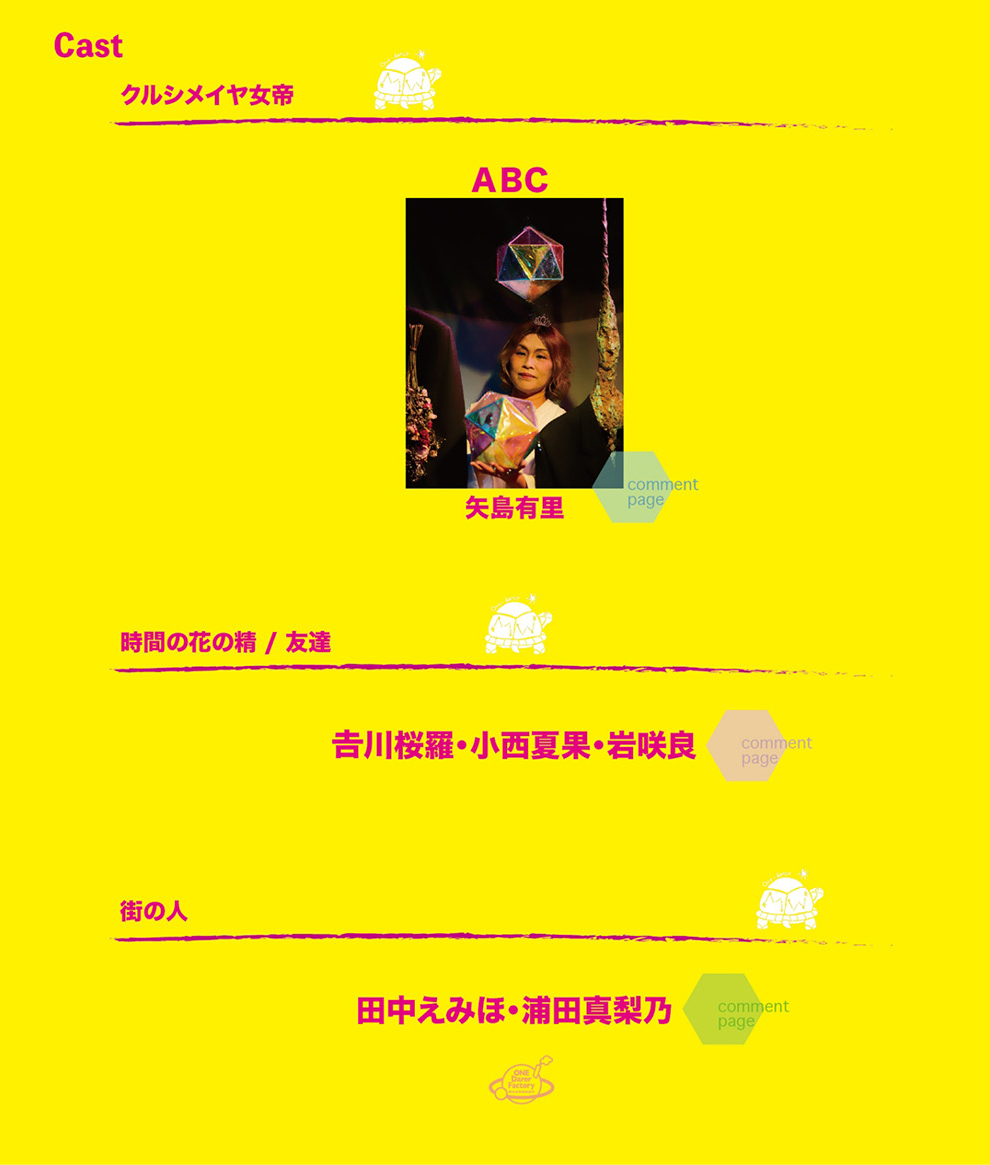 | Staff 脚本・演出:たかさきこず枝 舞台美術:姜奈美 歌唱指導:矢島有里 / 福嶋勲 振付:Tomoka.a / 柳川圭子 / CHIAKI 舞台監督:平野拓 演出助手:山本愛子 稽古場制作:白井友美 衣装:クリエイティブチーム 音響:松岡伸哉(K.S.S) 照明:有限会社ミス・ユー 制作:大谷智子 / 中島裕規子 / 齋藤秀雄 写真撮影:鍋田幸治 <協力> バオバブきかく / ワンダーラーオルケストラ ミュージカルカンパニーワンダーラー Ba Que Latta / Plie・Ballet Studio |